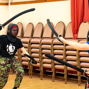 An essential part of learning sword work is learning control and we use protective equipment as required.